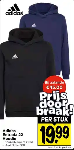 | 2 | Adidas Entrada 22 Hoodie | Vomar Voordeelmarkt | € 19,99 | 04 januari 2026 | 10 januari 2026 | Bekijk aanbieding | |||
