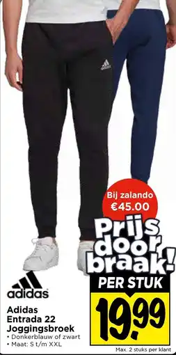 | 1 | Adidas Entrada 22 Joggingsbroek | Vomar Voordeelmarkt | € 19,99 | 04 januari 2026 | 10 januari 2026 | Bekijk aanbieding | |||