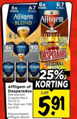 | 1 | Affligem of Desperados 30-33 cl | Vomar Voordeelmarkt | € 7,89 | € 5,91 | 25% korting | 18 januari 2026 | 24 januari 2026 | Bekijk aanbieding | |