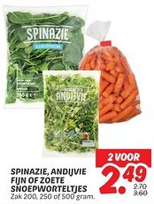 | 2 | ![]() | Spinazie, andijvie fijn of zoete snoepworteltjes 200, 250 of 500 gram | Dekamarkt | € 3,00 | € 2,49 | € 0,51 Korting | 10 februari 2026 | 16 februari 2026 | Bekijk aanbieding |