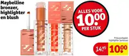 | 1 | Maybelline bronzer, highlighter en blush | Kruidvat | € 14,99 | € 10,00 | Alles voor 10.00 | 06 januari 2026 | 11 januari 2026 | Bekijk aanbieding | |
