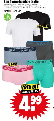 | 3 | Bon Giorno Damesboxers bamboo Per stuk | Dirk | € 4,99 | 08 maart 2026 | 14 maart 2026 | Bekijk aanbieding | |||