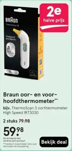 | 1 | Braun oor en voor hoofdthermometer | Etos | € 79,98 | € 59,98 | 2e halve prijs | 12 januari 2026 | 18 januari 2026 | Bekijk aanbieding | |