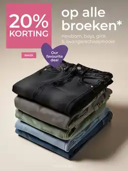 | 1 | Op alle broeken | Prenatal | 20% KORTING | 09 februari 2026 | 15 februari 2026 | Bekijk aanbieding | |||