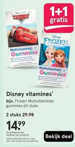 | 1 | Disney vitamines 1+1 gratis | Etos | € 29,98 | € 14,99 | 1+1 gratis | 12 januari 2026 | 18 januari 2026 | Bekijk aanbieding | |