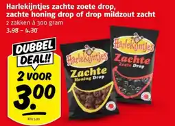 | 2 | Harlekijntjes zachte zoete drop, zachte honing drop of drop mildzout zacht 300 gram | Poiesz | € 4,30 | € 3,00 | € 1,30 Korting | 12 april 2026 | 18 april 2026 | Bekijk aanbieding | |