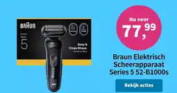 | 1 | Braun Elektrisch Scheerapparaat Series 5 52-B1000s | Plein.nl | € 77,00 | 18 februari 2026 | 09 maart 2026 | Bekijk aanbieding | |||
