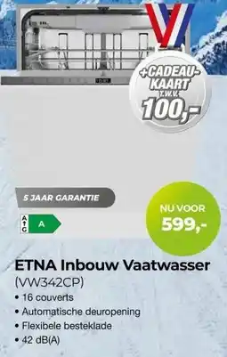 | 1 | ETNA Inbouw Vaatwasser (VW342CP) 42 dB | EP Beerepoot | € 599,00 | 05 februari 2026 | 22 februari 2026 | Bekijk aanbieding | |||