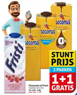 | 1 | Chocomel of Fristi 1 liter 1+1 gratis | Hoogvliet | € 5,98 | € 2,01 | 1+1 gratis | 27 december 2025 | 01 januari 2026 | Bekijk aanbieding | |