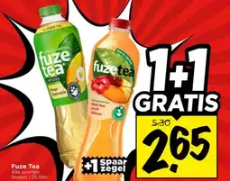 | 7 | Fuze Tea 1.25 liter 1+1 GRATIS | Vomar Voordeelmarkt | € 5,00 | € 2,65 | 1+1 GRATIS | 19 februari 2026 | 21 februari 2026 | Bekijk aanbieding | |