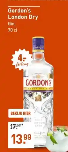 | 1 | Gordon's London Dry 70 cl | Gall & Gall | € 17,99 | € 13,99 | € 4,00 Korting | 07 april 2026 | 19 april 2026 | Bekijk aanbieding | |