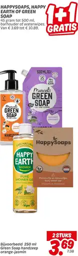 | 2 | Happysoaps, happy earth of green soap 250 ml 1+1 GRATIS | Dekamarkt | € 7,38 | € 3,69 | 1+1 GRATIS | 17 maart 2026 | 23 maart 2026 | Bekijk aanbieding | |