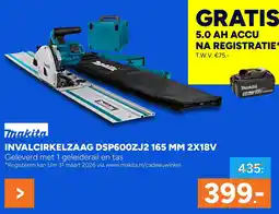 | 1 | Makita Invalcirkelzaag DSP600ZJ2 165 MM 2X18V | BOUWMAAT | € 435,00 | € 399,00 | € 36,00 Korting | 05 januari 2026 | 25 januari 2026 | Bekijk aanbieding | |