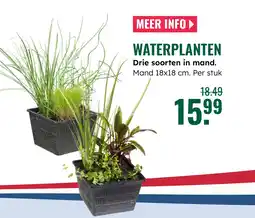| 3 | Waterplanten Drie soorten in mand 18 x 18 cm | GroenRijk | € 18,49 | € 15,99 | € 2,50 Korting | 23 april 2026 | 29 april 2026 | Bekijk aanbieding | |
