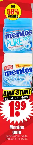 | 1 | Mentos gum | Dirk | € 4,79 | € 1,99 | TOT 58% KORTING | 21 januari 2026 | 27 januari 2026 | Bekijk aanbieding | |