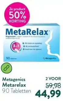| 3 | Metagenics metarelax tabletten 180tb | De Online Drogist | € 49,89 | € 32,43 | € 17,46 Korting | 20 november 2025 | 18 december 2025 | Bekijk aanbieding | |
