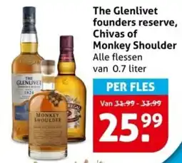 | 1 | The Glenlivet founders reserve, Chivas of Monkey Shoulder 0.7 L | Hoogvliet | € 33,99 | € 25,99 | € 8,00 Korting | 14 januari 2026 | 20 januari 2026 | Bekijk aanbieding | |