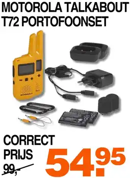 | 1 | MOTOROLA TALKABOUT T72 PORTOFOONSET | Correct | € 99,00 | € 54,95 | € 44,05 Korting | 08 februari 2026 | 14 februari 2026 | Bekijk aanbieding | |