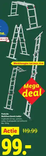 | 6 | Parkside Multifunctionele ladder | Lidl | € 119,99 | € 99,00 | € 20,99 Korting | 22 december 2025 | 28 december 2025 | Bekijk aanbieding | |