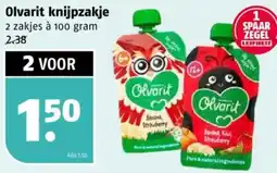 | Olvarit Knijpfruit smoothie bosvruchten 12m+ 100 g 3+2 gratis | Albert Heijn | € 1,19 | 3+2 gratis | 19 januari 2026 | 25 januari 2026 | ||