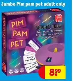 | 1 | Jumbo Pim pam pet adult only | Kruidvat | € 8,99 | 06 januari 2026 | 11 januari 2026 | Bekijk aanbieding | |||