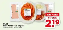 | 1 | PLUS Filet Americain en paté 135-150 g | PLUS | € 3,45 | € 2,19 | € 1,26 Korting | 25 februari 2026 | 03 maart 2026 | Bekijk aanbieding | |