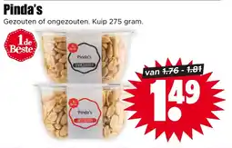 | 1 de Beste Pinda's gezouten 275 g | Dirk | € 1,76 | € 1,49 | € 0,27 Korting | 15 april 2026 | 21 april 2026 | |