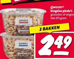 | Gwoon kingsize pinda's 275 gram | Nettorama | € 2,49 | 06 april 2026 | 12 april 2026 | |||
