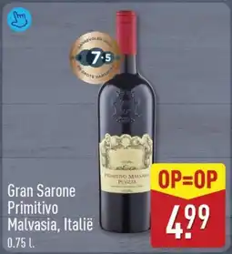 | 2 | Gran Sarone Primitivo Malvasia 0,75 l | ALDI | € 4,99 | 26 januari 2026 | 01 februari 2026 | Bekijk aanbieding | |||