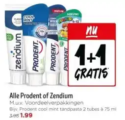 | 2 | Alle Prodent of Zendium 75 ml 1+1 gratis | Jumbo | € 3,98 | € 1,99 | 1+1 gratis | 11 februari 2026 | 17 februari 2026 | Bekijk aanbieding | |