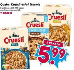 | Quaker Cruesli chocolade Per 450 g | PLUS | € 3,99 | 04 februari 2026 | 10 februari 2026 | |||