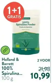| 1 | 100% Spirulina Poeder Biologisch | Holland & Barrett | € 21,98 | € 10,99 | € 10,99 Korting | 09 maart 2026 | 15 maart 2026 | Bekijk aanbieding | |
