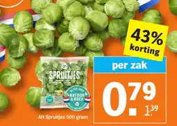 | 1 | AH Spruitjes 500 g | Albert Heijn | € 1,39 | € 0,79 | 43% korting | 19 januari 2026 | 25 januari 2026 | Bekijk aanbieding | |
