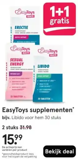 | 2 | EasyToys supplementen 1+1 gratis | Etos | € 31,98 | € 15,99 | 1+1 gratis | 23 februari 2026 | 08 maart 2026 | Bekijk aanbieding | |