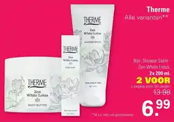 | Therme Zen White Lotus Body Butter 225 gram 225 GR - crème 1+1 gratis | Etos | € 13,49 | 1+1 gratis | 19 januari 2026 | 25 januari 2026 | ||