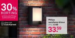 | 1 | Philips wandlamp Arbour IP44 | Karwei | € 47,99 | € 33,59 | 30% korting | 27 april 2026 | 03 mei 2026 | Bekijk aanbieding | |