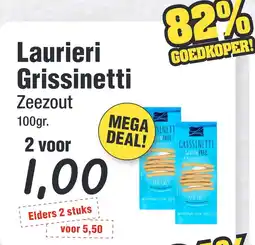 | 2 | Laurieri Grissinetti Zeezout | Budget Food | € 1,00 | 82% GOEDKOPER! 2 voor | 19 december 2025 | 26 december 2025 | Bekijk aanbieding | ||