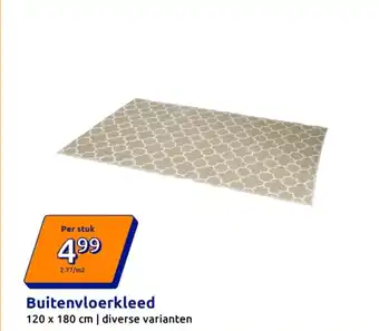 De prijs van de Buitenvloerkleed kan ook teruggevonden worden hierboven op de pagina, samen met de datum van wanneer de aanbieding beschikbaar is. Ook kun je de prijzen in de huidige Action folder of op de Action website controleren. De aanbiedingen verzekeren je van het kopen van de Action producten voor de laagste prijs.