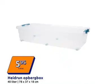 De prijs van de Heidrun opbergbox kan ook teruggevonden worden hierboven op de pagina, samen met de datum van wanneer de aanbieding beschikbaar is. Ook kun je de prijzen in de huidige Action folder of op de Action website controleren. De aanbiedingen verzekeren je van het kopen van de Action producten voor de laagste prijs.