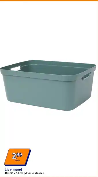 Deze Livv mand is nu in de aanbieding bij Action. Bekijk ook andere lopende acties en bespaar met scherpe prijzen of online deals. Bestel Livv mand via Action website of koop het product met korting in een winkel bij jou in de buurt. Op Folderz.nl verzamelen we dagelijks de beste Livv mand aanbiedingen. Klik op het belletje om een gratis melding te ontvangen zodra er weer een nieuwe actie of prijsverlaging voor Livv mand beschikbaar is.Veelgestelde vragen over Livv mand