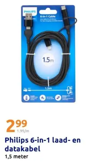 De prijs van de Philips 6-in-1 laad en datakabel kan ook teruggevonden worden hierboven op de pagina, samen met de datum van wanneer de aanbieding beschikbaar is. Ook kun je de prijzen in de huidige Action folder of op de Action website controleren. De aanbiedingen verzekeren je van het kopen van de Action producten voor de laagste prijs.