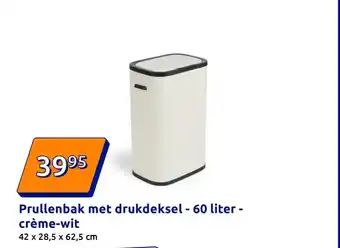 De prijs van de Prullenbak met drukdeksel kan ook teruggevonden worden hierboven op de pagina, samen met de datum van wanneer de aanbieding beschikbaar is. Ook kun je de prijzen in de huidige Action folder of op de Action website controleren. De aanbiedingen verzekeren je van het kopen van de Action producten voor de laagste prijs.