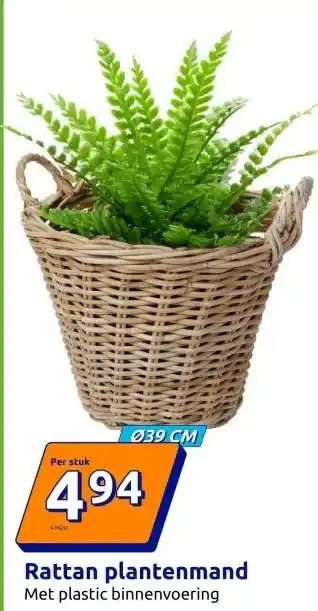 Deze Rattan plantenmand is nu in de aanbieding bij Action. Bekijk ook andere lopende acties en bespaar met scherpe prijzen of online deals. Bestel Rattan plantenmand via Action website of koop het product met korting in een winkel bij jou in de buurt. Op Folderz.nl verzamelen we dagelijks de beste Rattan plantenmand aanbiedingen. Klik op het belletje om een gratis melding te ontvangen zodra er weer een nieuwe actie of prijsverlaging voor Rattan plantenmand beschikbaar is.Veelgestelde vragen over Rattan plantenmand