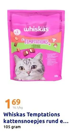Koop Whiskas Temptations kattensnoepjes rund en kalkoen komende week met korting