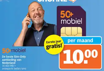 Neem een kijkje voor de goedkoopste producten tussen alle aanbiedingen! Als je wilt weten of Albert Heijn de hoogste korting voor 50+ Mobiel De beste Sim-Only aanbieding van Nederland heeft, vergelijk het op de Topic page of met andere winkels.