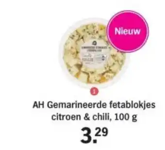 Nieuw: AH Gemarineerde fetablokjes citroen & chili, 100 g, 3.29