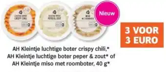 AH Kleintje luchtige boter crispy chili, AH Kleintje luchtige boter peper & zout of AH Kleintje miso met roomboter korting bij Albert Heijn