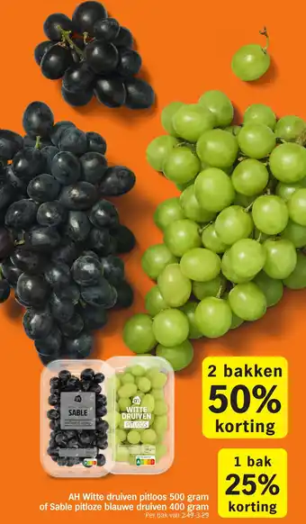 Koop AH Witte druiven pitloos of Sable pitloze blauwe druiven komende week met korting