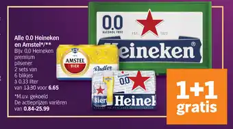 Alle 0.0 Heineken en Amstel 0.66 l 1+1 gratis