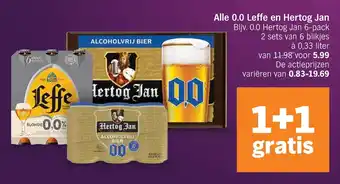 Alle 0.0 Leffe en Hertog Jan 0,33 l 1+1 gratis